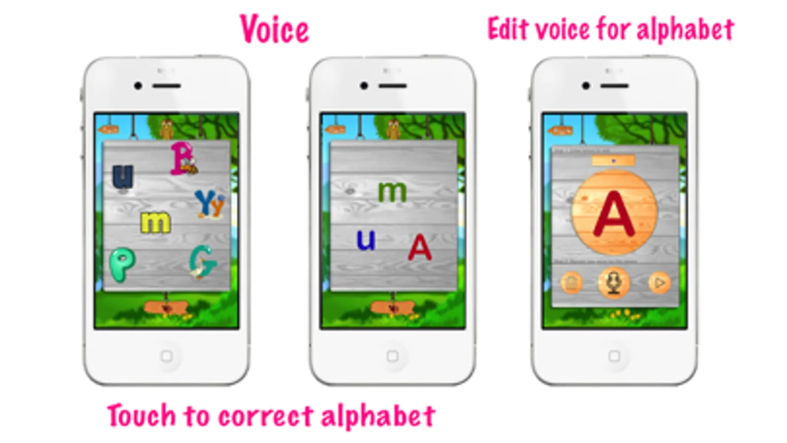 - Learn by touch to the letters and listen in English language or your language (or shape,color,number...depending on you)