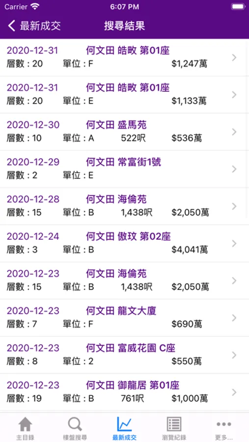 最新成交 - 提供何文田及九龍塘成交紀錄