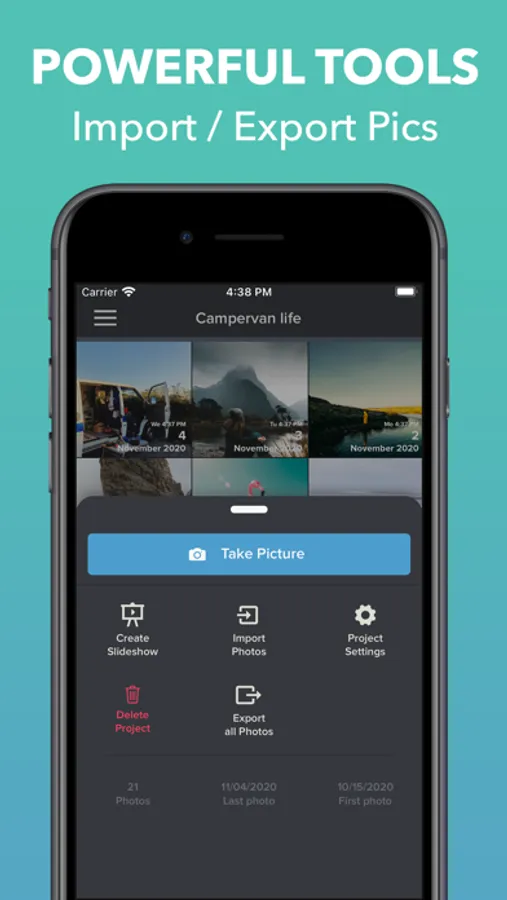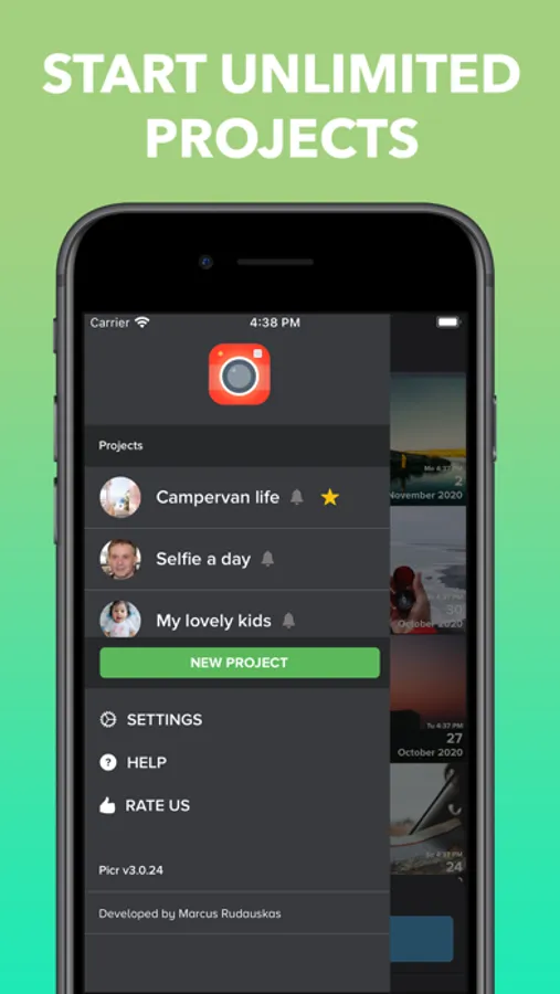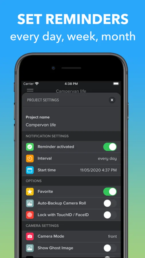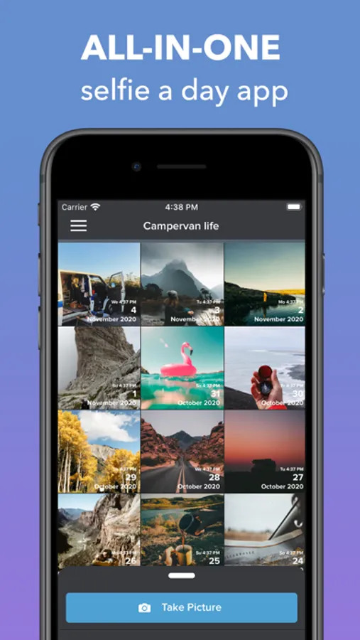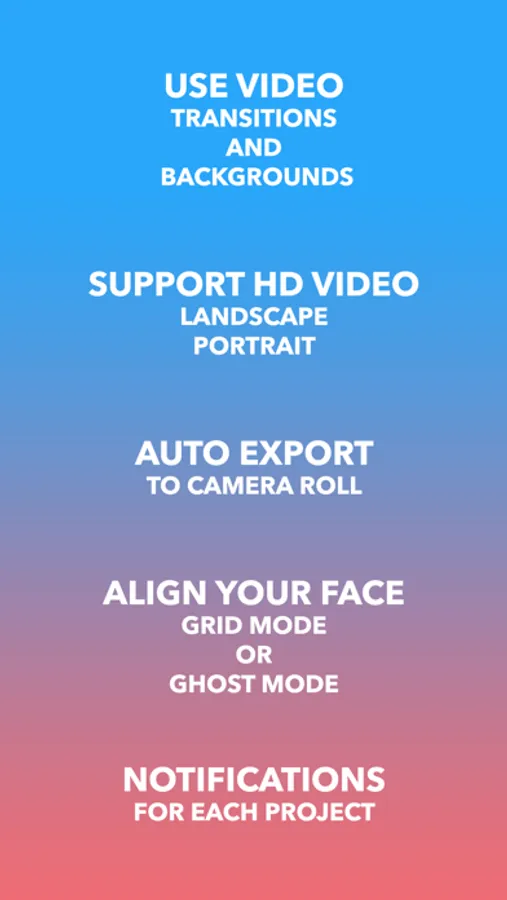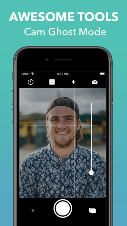 3 - It comes with Overlay and Gird features to make sure your face is lined up correctly and your position matches with previous selfies and portraits.