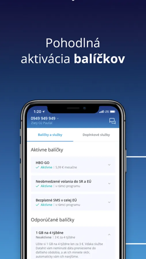 - aktivovať, deaktivovať alebo upraviť si vybrané balíčky a služby