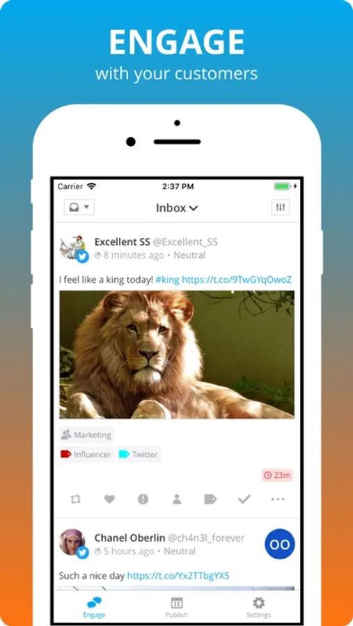Use Coosto on your mobile device with the Coosto app. View your Content Calendar, respond to social media messages and publish posts on the go. All with the same speed and ease as you are used to from the desktop application.