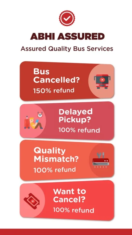 AbhiBus app is extremely user-friendly with features like Free Cancellation, Bus type filters, travel insurance and women safety seat selection making it easy for online booking of bus tickets. Secure Payments with Instant Refunds in case you decide to cancel your journey or in case your payment fails for any reason.The app also offers exclusive bus ticket deals and new user discounts for in-app bookings to sweeten your journey!