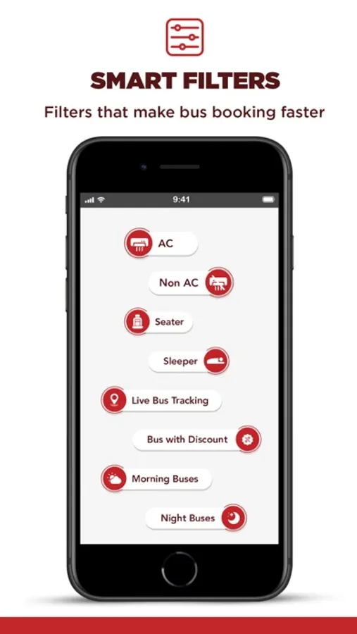 Built-in quick filter to make easy selection of bus categories (AC, Non-AC, Sleeper or Seater).