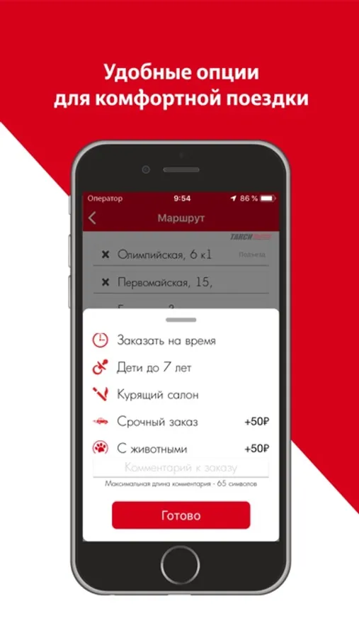 При заказе такси в приложении вы можете выбрать удобный для вас тариф: такси эконом, такси комфорт и такси бизнес. В пожеланиях можно указать, что с Вами поедет ребенок до 7 лет, машина приедет с детским креслом (опция бесплатная). В комментарии можете указать дополнительные пожелания к поездке.