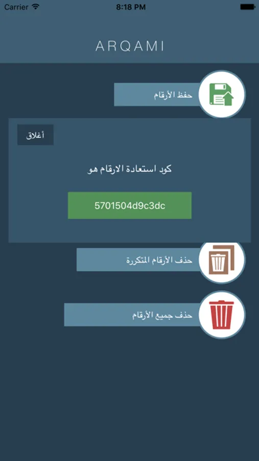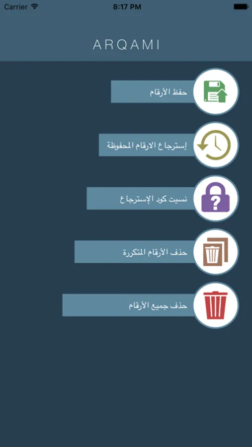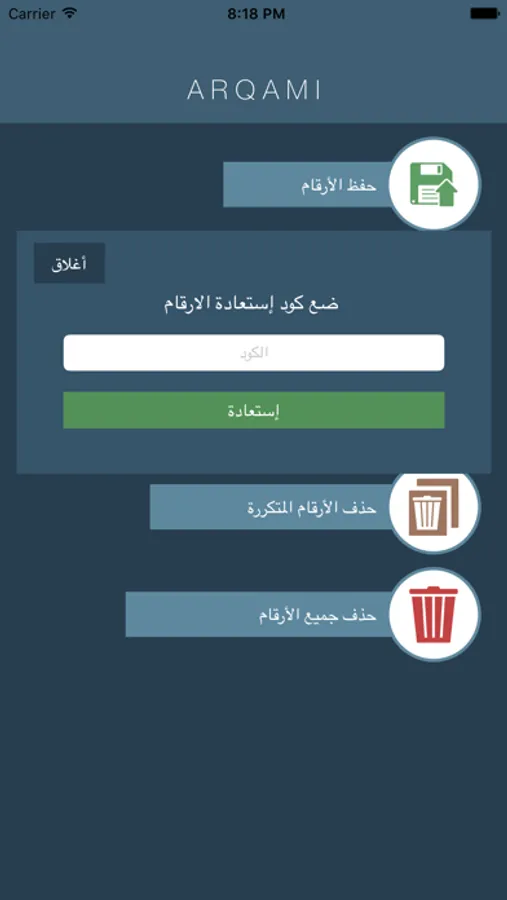 أرقامي هو اسهل طريق لك لكي تقوم بعمل باك أب لجميع جهات الأتصال الخاصة بك دون الحاجة لاستخدام كمبيوتر أو مزامنة أرقامك في الآي كلاود ، أحفظ جميع أرقامك بضغطة زر واحدة حيث سيعطك البرنامج كود من خلاله يمكنك أستعادة أرقامك في أي جهاز آخر من خلال وضع نفس الكود