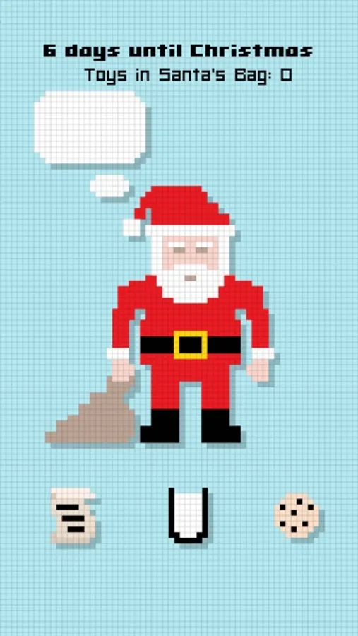 Help 8bit Santa Claus Gotchi deliver as many packages as possible by Christmas Day! Check his list twice to see who's been nice or not nice. Give the children a present or coal based on their good or bad behavior. Correct answers help Santa deliver more gifts on Christmas! Take good care of Santa by giving him milk and cookies along the way, but NOT TOO MUCH!