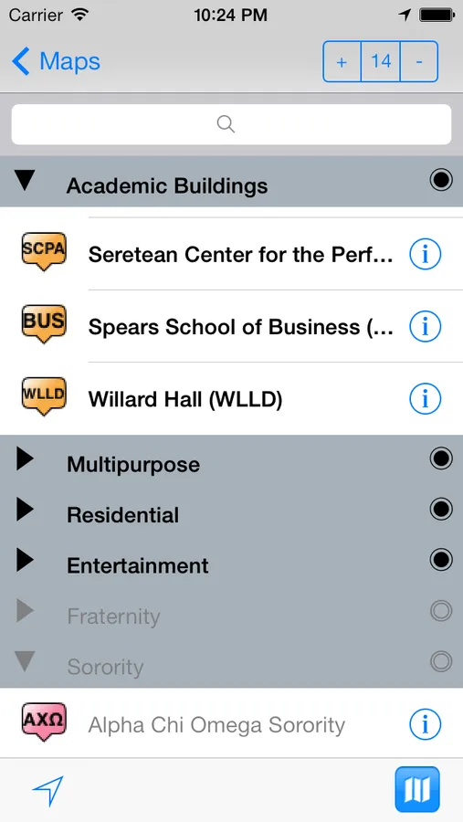 - Show maps in standard, satellite and hybrid format.