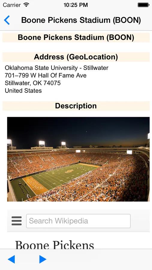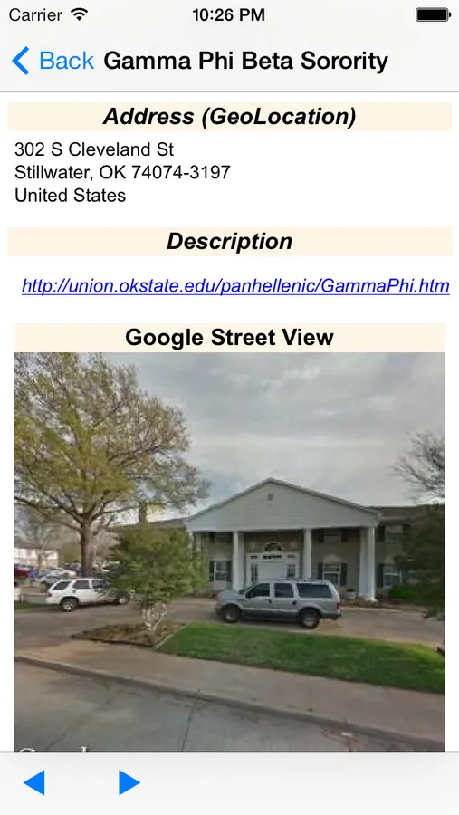 - Select an annotation to get detailed information including the address, a description including related pictures, historical information, links to additional information on associated Websites, a Streetview Image (if available), and links to reviews of nearby restaurants and businesses.