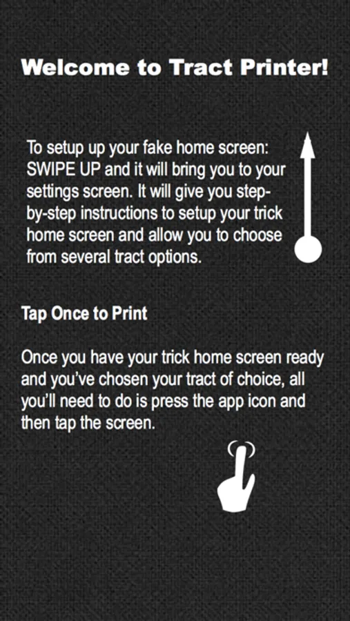 The “Tract Printer” is a fun and creative way to give someone a gospel tract. The app creates the illusion that you’re printing a tract out of your phone. It comes off like an impressive magic trick that makes people smile, laugh, and ask “How did you do that!?” It creates a wonderful atmosphere to leave them with a gospel tract. To see a video of the “Tract Printer” app in action visit http://tinyurl.com/oh7wkwg.