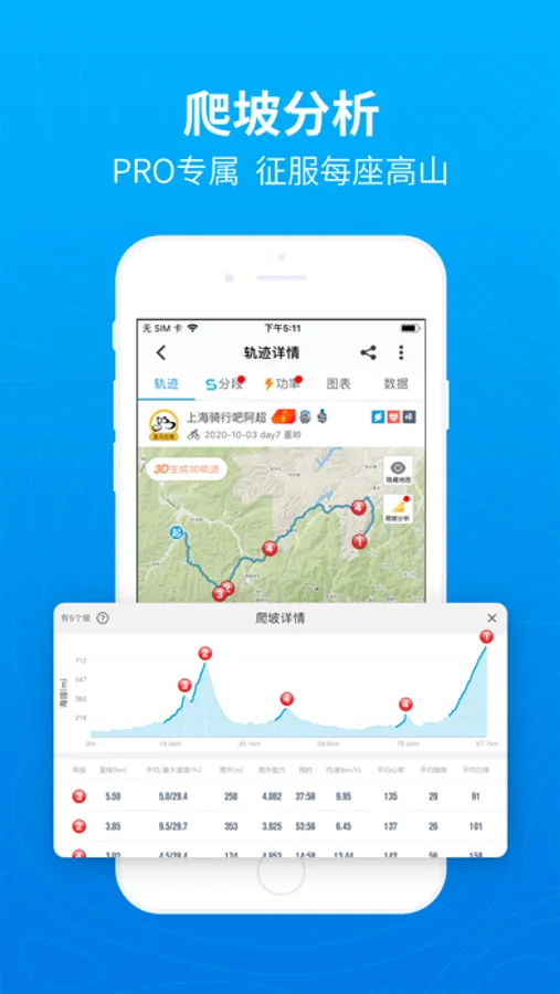 2、記錄運動軌跡、功率數據、連接碼表心率踏頻、海拔曲線、坡度評級、找戶外路線、導航、組隊、線上賽、勳章成就等超多實用的功能!