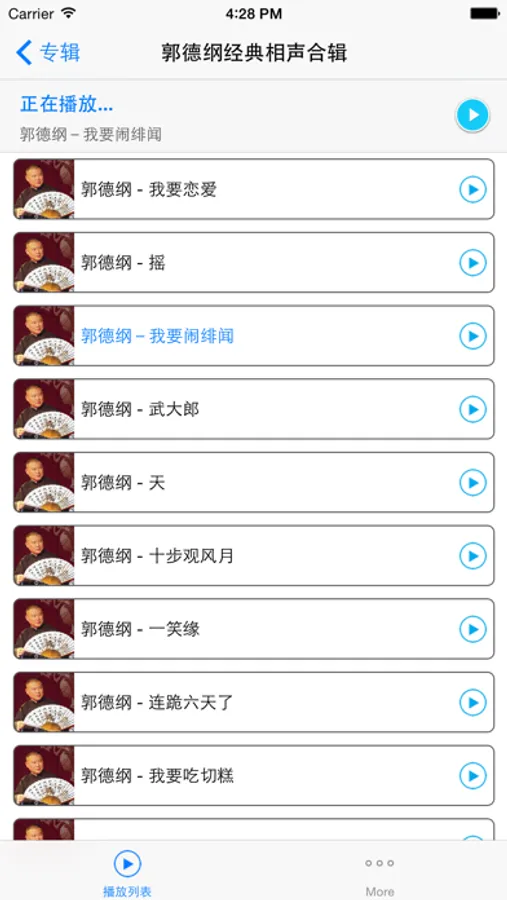 郭德纲最新相声大合集离线版, 包含郭德纲相声2013最新相声、郭德纲于谦经典相声、德云社相声等等应有尽有! 高品质音质享受, 强大流畅的播放功能和使用体验, 绝对会成为您欣赏郭德纲相声爱不释手的最佳软件! 由于软件体积较大, 请在wifi环境中下载安装, 一次下载, 后续无需再消耗网络流量!