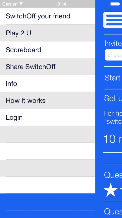 You can accept incoming calls in the “SwitchOff mode”, witch will be reactivated after the call. The challenge looser can stop the “SwitchOff mode” at any time but he and the challenger will receive a message, that will unmask the looser as a cheater. On top, the challenger receives another point in the personal challenge between the two opponents. And for those brains upon you: If you stop the “SwitchOff mode” by pressing the home button: This as well will give the challenger one more point.