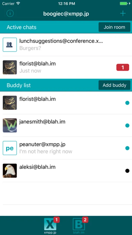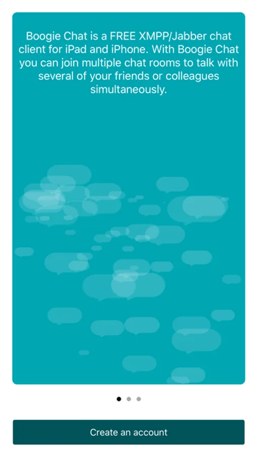 Boogie Chat is a FREE XMPP/Jabber chat client for iPad and iPhone. With Boogie Chat you can join multiple chat rooms to talk with several of your friends or colleagues simultaneously.