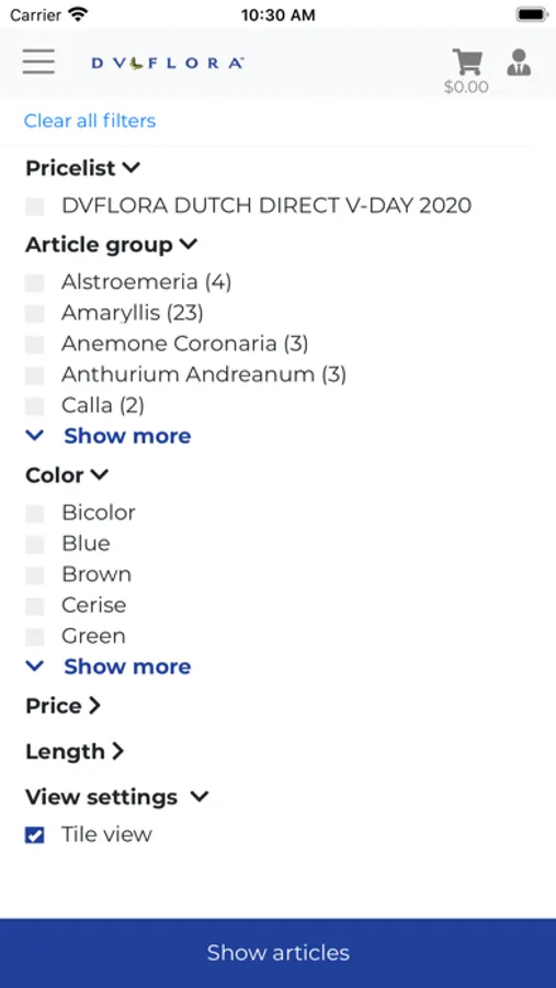 With DV Flora Dutch Direct Flower Shop you can easily and quickly find and purchase floriculture products and see what orders there are. If you have an account on our web shop, you can use the same login information for this app.