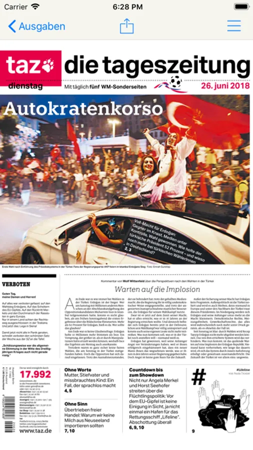 Mit der taz-App bieten wir unseren AbonnentInnen die Möglichkeit, die aktuellen Ausgaben der taz unkompliziert zu lesen.