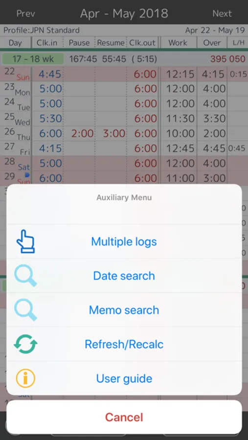 8. Although the display is monthly, time, aggregate salary, you can specify a 1 week / 2 weeks /4 weeks / half month / 1 month