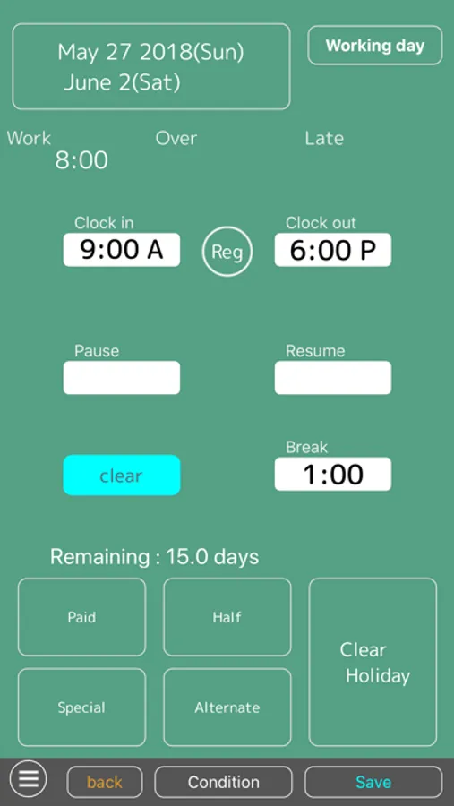 "Pause/Resume" button for lunchtime or your private time are deducted.