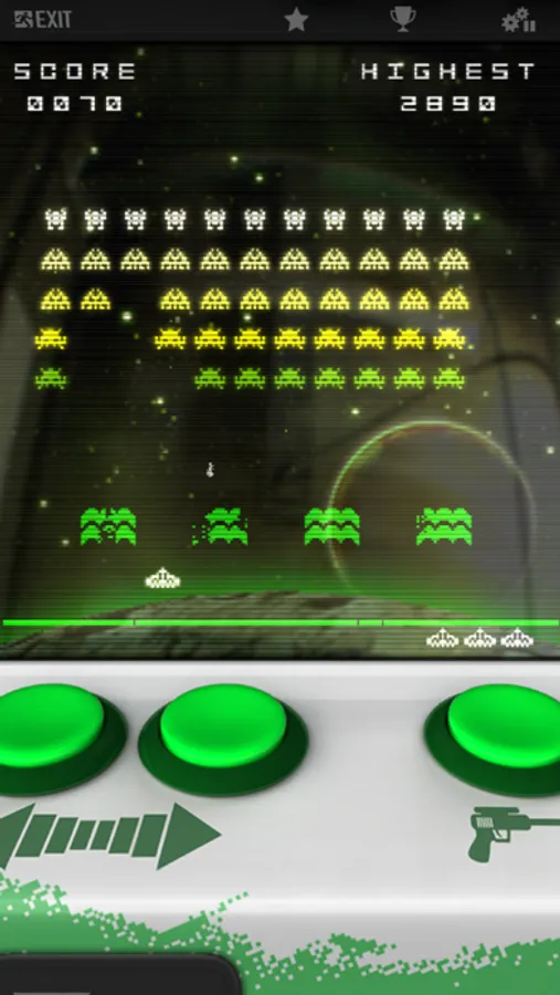 Try and shoot all the alien invaders before they destroy your bases and land.