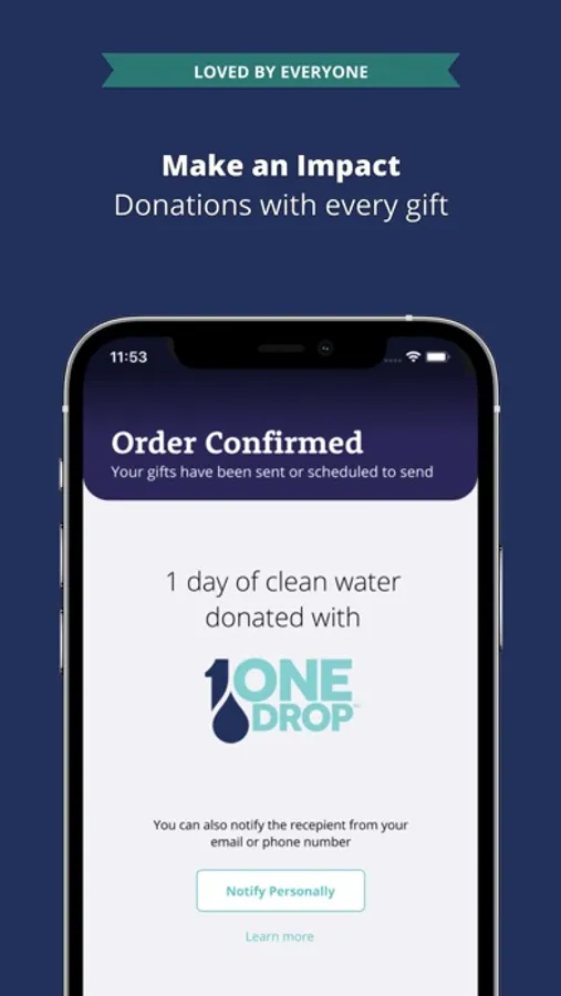 Recipients get to choose where to redeem from thousands of merchant locations, and one day of clean water is donated with every gift sent makes a positive social impact.