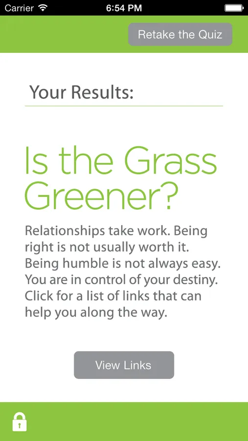The Grass is Greener App is a tool for you to use during those heated moments that require a cool down period. The App offers a series of questions that allow you to consider your relationship—how did you get here in the first place? Or why do I put up with this?