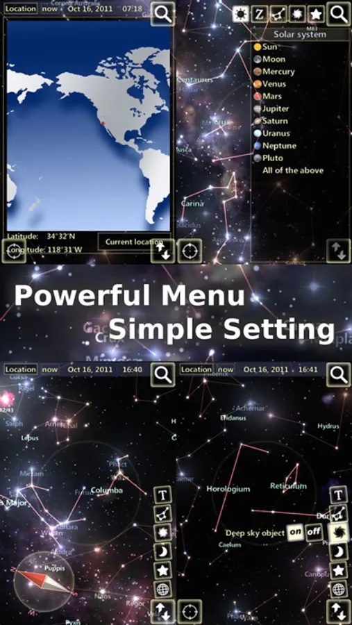 • Sun, Moon, planets, 88 Constellations and 8000+ stars visible to the naked eyes.