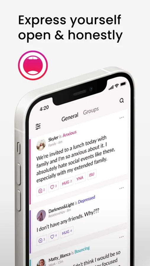 - React to other people’s vents using our special response buttons