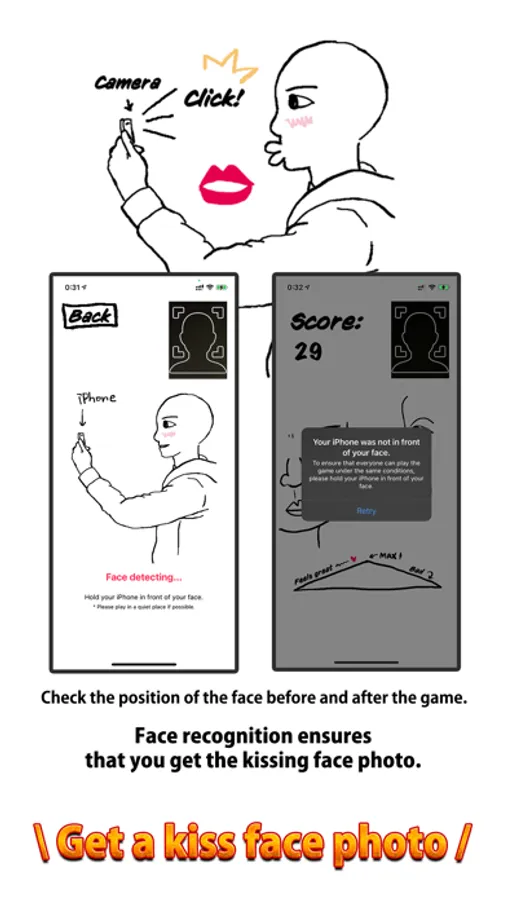 If you don't get a photo of player's kissing face, the app will naturally ask the player to try again.