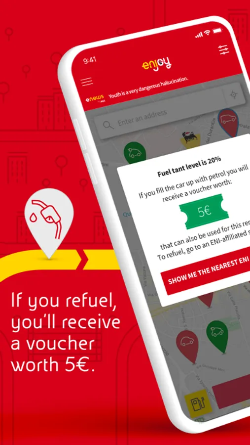 Enjoy: Eni’s car sharing service to book and rent shared and sustainable cars.