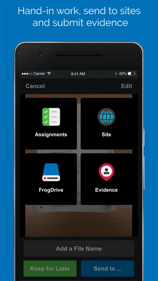 FrogSnap enables you to take pictures and send them to your FrogDrive, timeline or any site in your school’s platform.