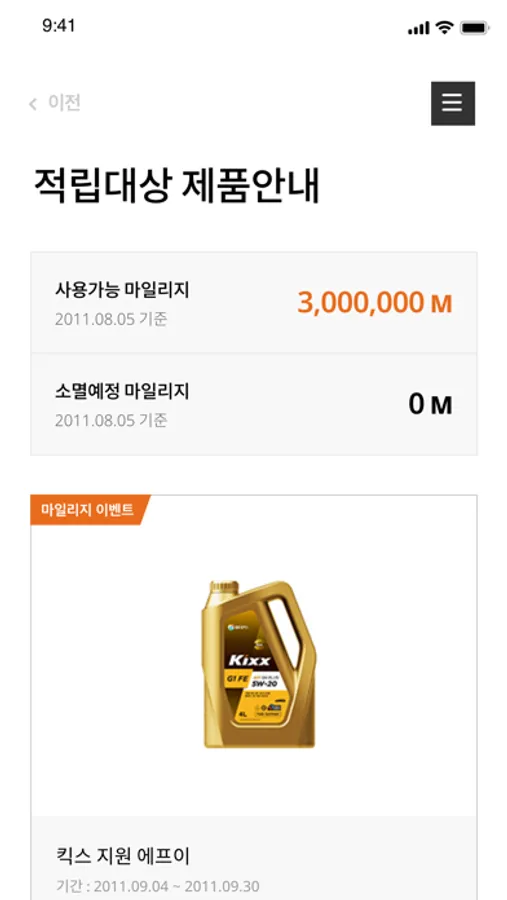 - 적립대상 제품안내 : 마일리지 적립 대상 제품에 대한 정보를 확인할 수 있습니다.