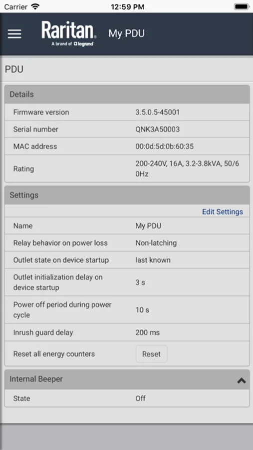 PDView provides a rich display interface for your Raritan PX2, PX3, PX3TS, BCM, PMC or EMX on your iPad or iPhone. Easily access all power measurements, device status, and network settings.