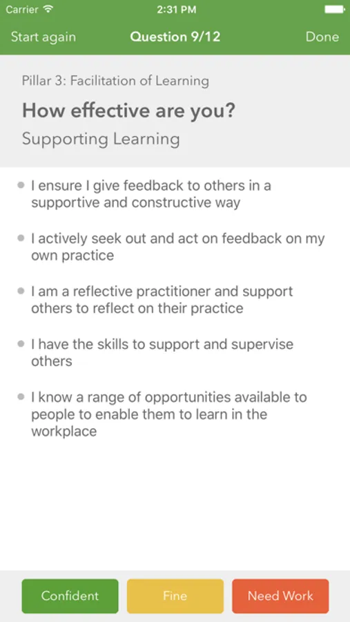 •the ability to record a reflection of the learning using text and audio recording. This can then be saved on the app and emailed for use as part of performance and career development