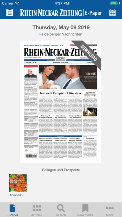 Die App der Rhein-Neckar-Zeitung laden Sie gratis aus dem App Store. Um alle Möglichkeiten der App optimal nutzen zu können, empfehlen wir den Einsatz der neuesten iOS-Version.