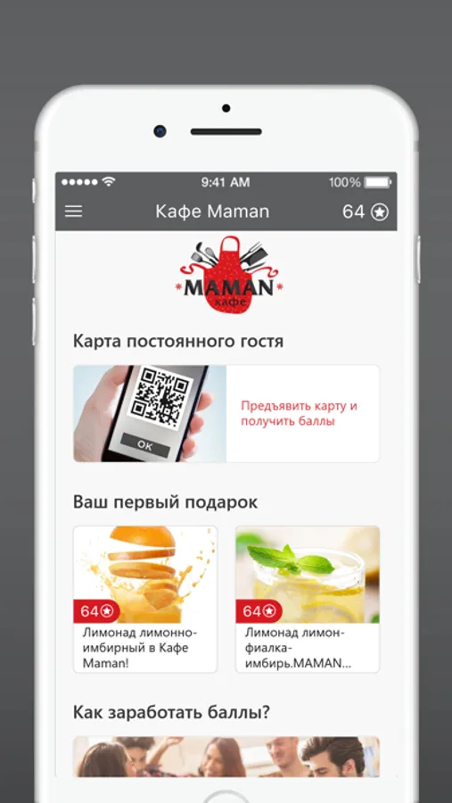 Используя приложение, Вы можете предъявлять бонусную карту при каждом посещении кафе Maman, получать баллы и обменивать их на приятные подарки.