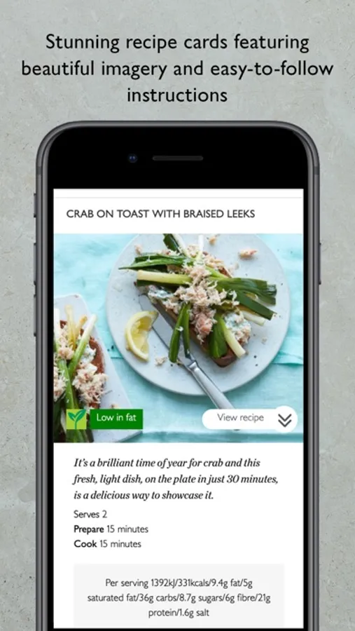 • Stunning recipe cards featuring beautiful photography and step-by-step cooking instructions