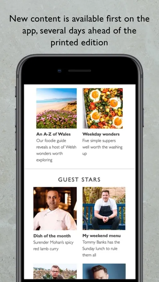 The smartphone and tablet app features recipes, features and more from the award-winning Waitrose & Partners Food magazine. It includes: