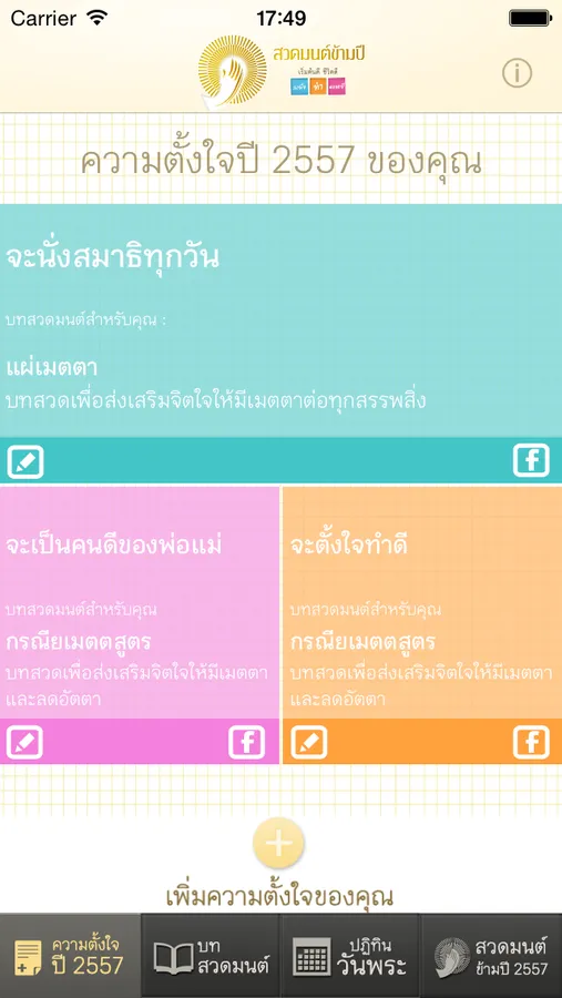 สำนักงานกองทุนสนับสนุนการสร้าง เสริมสุขภาพ(สสส.) และภาคีเครือข่าย จึงขอนำเสนอกิจกรรมสวดมนต์ข้ามปี เริ่มต้นดี ชีวิตดี ลงมือทำตลอดปี ให้เป็นอีกหนึ่งทางเลือกในการรับวันใหม่ รับปีใหม่ ด้วยสติและความเป็นสิริมงคล ร่วมสวดมนต์และตั้งปณิธานจิตที่จะร่วมทำเรื่องดีๆ กันตลอดปีหน้า