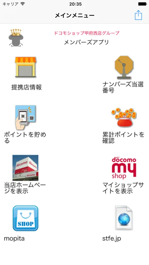 ドコモショップ甲府西店グループ公式の会員サービスアプリです。インストールすればお得な特典がいっぱい!是非ご利用ください。