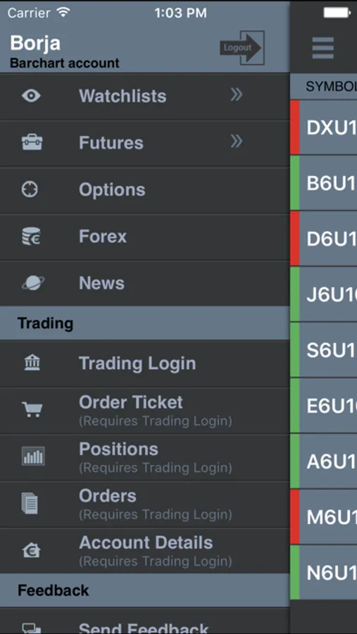 Trade commodities and futures in real-time from your iPhone! Never miss another trade opportunity when you are on the go - with Barchart Trader you can place orders through over 40 different futures brokers and receive instant trade confirmations when an order is filled. With streaming real-time quotes from dozens of exchanges, Trader's clean and simple interface puts the trading data you need right at your fingertips.