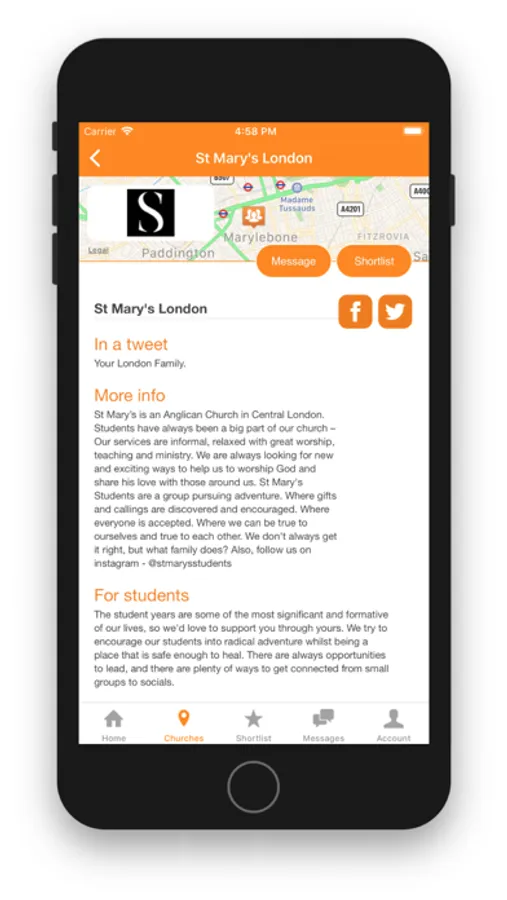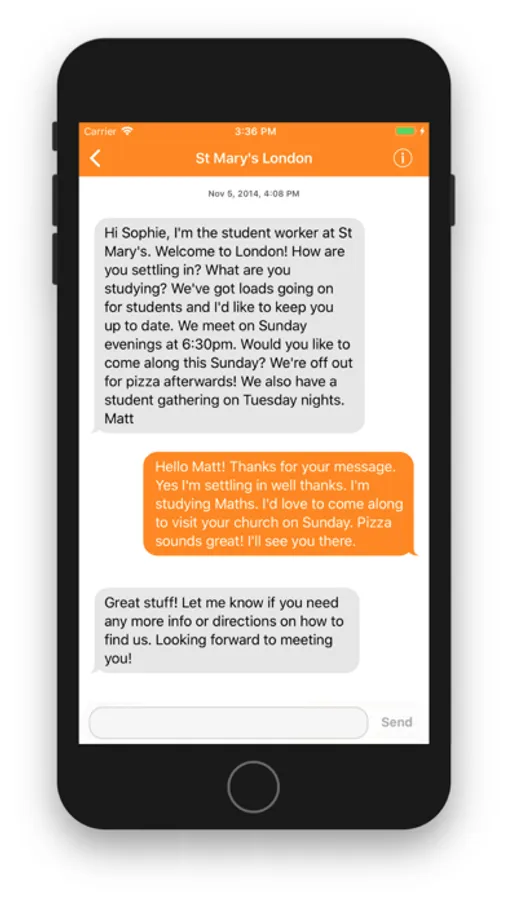 - Meet & greet churches using messaging