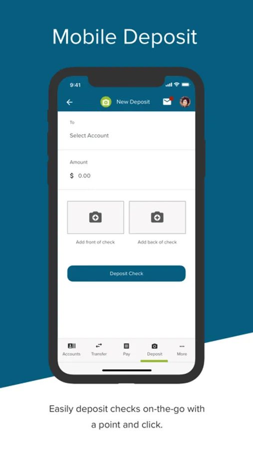 Deposit Checks - Just snap a picture of your properly endorsed check for quick and easy deposits.