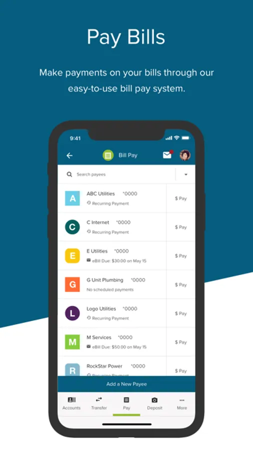 Bill Pay - Schedule recurring or one time payments on your bills through our easy-to-use bill pay system.