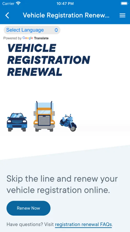 Save time and take care of DMV business without going into the DMV office. Renew your registration, start your REAL ID application, prep for exams with practice tests, access your MyDMV account, and more.