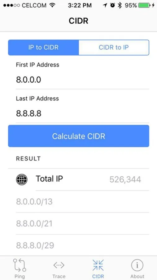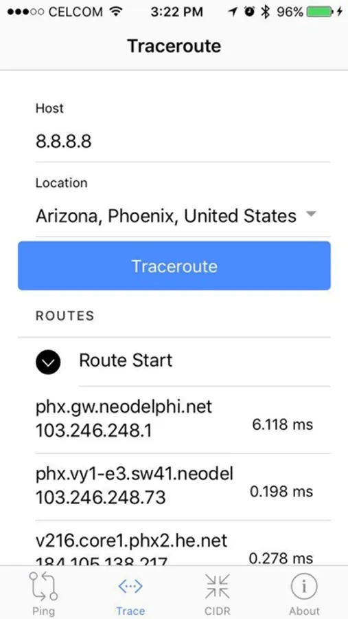 IP Tools app enables mobile users to ping or to traceroute IP address from multiple locations via LocaProxy’s nodes. In additions, it also equipped with handy CIDR calculator to help network administrator on CIDR and subnet calculation.