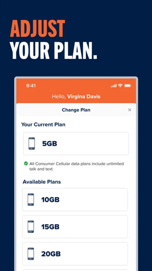 Here’s yet another way Consumer Cellular makes wireless service easy. With the MY CC app, you can conveniently manage your Consumer Cellular account right from your smartphone. Track your usage, pay your bill, upgrade your plan or even manage your monthly plans if you need to. You can enable or disable select service functions. Plus, you can access our award-winning customer support with the touch of a button!