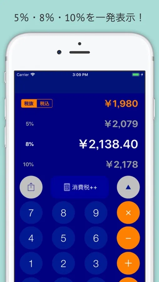 消費税++は金額を入力するだけで5%・8%・10%の税込価格を一発計算してくれるシンプルながら超便利な消費税電卓です!
