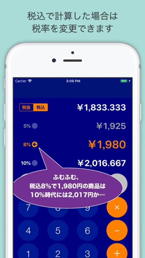 「8%込みの値段なんてパパッと暗算できないよ!」「イートインとテイクアウトでどのくらい変わるの?」…このようなニーズに一発回答するアプリ、それが消費税++です!
