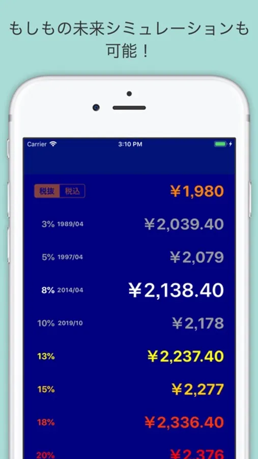 おまけとして、もしも税率13%や15%の時代が到来したらどうなるか?も一覧で確認できるようにしました。