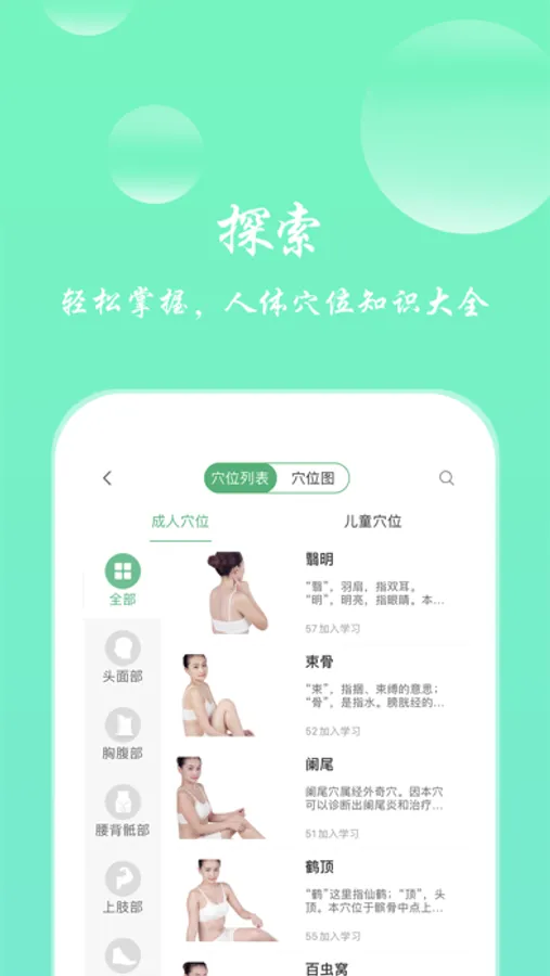 【海量视频】:视频涵盖人体400多个穴位的定位、疗效、手法、主治疾病,包括成人、儿童、老人,所有人群。