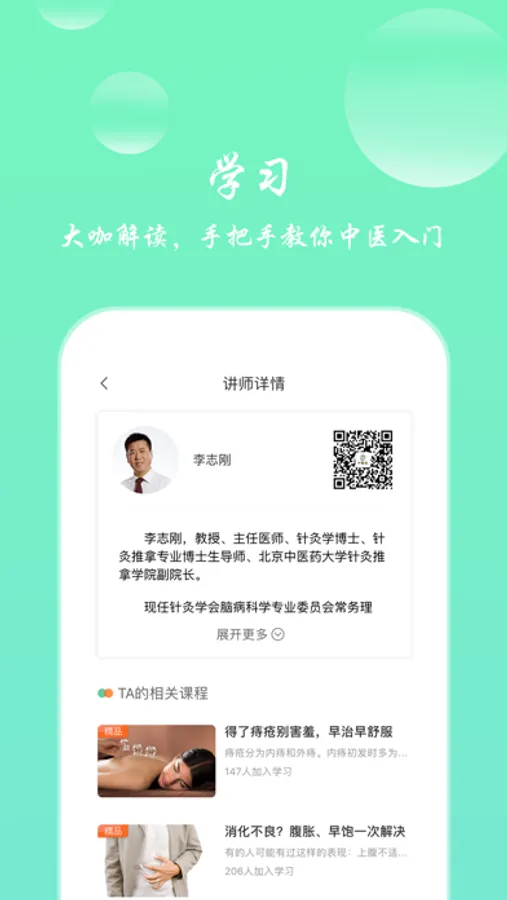 中医堂集传统推拿、刮痧、拔罐、艾灸、针刺等中医疗法于一体。本着以自然为经、绿色为络,遵循中华五千年传承的宝贵医典、古训,结合现代养生知识,补虚泻实、扶正祛邪、平衡阴阳,力争打造出养生保健行业的知 名品牌。 以更直观的视频镜头,为您带来精准的中医古法教学,中医养生5法轻松同步学,一学就会经穴祛病养生术,让你百病全消。
